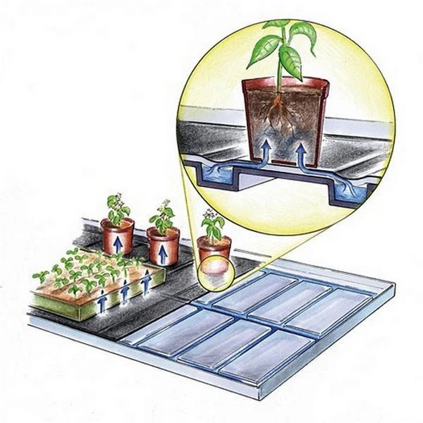 In de bodem van de schaal zijn er kanalen waardoor het water loopt. De planten nemen slechts zoveel water als ze nodig hebben dankzij het bijgeleverde vloeidoek.
